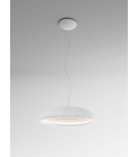 Die Rotaliana Febo H1 Pendelleuchte überzeugt mit kontrastierender Innen- und Außenseite und spendet nach unten gerichtetes, direktes LED-Licht. Das kreative Design stammt von Paolo Rizzatto und ist ein zeitloses Schmuckstück für jedes Interieur in ihrer ästhetischen Formgebung. Der Leuchtenschirm der Febo H1 besitzt die Form einer abgeflachten Kuppel mit weich abgerundeten Kanten und matter Oberfläche. Neben dieser formal schlichten Außenseite offenbart Febo eine faszinierende dreidimensionale Innenseite mit unzähligen Diamantfacetten. Dieses Design ist von der arabischen Architektur und den von M.C. Escher gezeichneten Studien zur regelmäßigen Teilung von Flächen inspiriert. Die integrierten LEDs von Febo H1 sitzen im Rahmen des Schirms verborgen und strahlen das Licht auf die facettierte Fläche . Somit wird ein faszinierender Lichtbrechungseffekt erzeugt. Der Baldachin hat die gleiche... ...