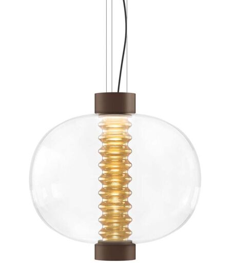 Die elegante Kundalini Bolha Pendelleuchte kombiniert gekonnt ein Spiel von Komposition und Kreativität. Die Designer Valerio Sommella & Anonima Luc verwirktlichten das Konzept wo das Glas zum Protagonisten wird – der strukturierte Innenzylinder als Lichtquelle, mit Filamenten die traditionellen Glühbirnen ähneln, und der Diffusor, der wie eine umhüllende, ätherische, transparente Blase wirkt. Das kontinuierlich gebrochene Licht erhält so durch das Zusammenspiel des äußeren Glasdiffusors und des inneren Leuchtzylinders eine greifbare Erscheinung. Die beiden Glaselemente scheinen miteinander zu kommunizieren um mehr Licht zu streuen. Die einzigartige Kundalini Bolha Pendelleuchte sorgt für warme blendfreie Lichtverteilung und eignet sich für alle Wohnräume und lässt sich als blickfangendes Prunkstück mit jedem Dekor verbinden. Die Bolha Pendelleuchte überzeught in jedem Interieur, ob klas... ...