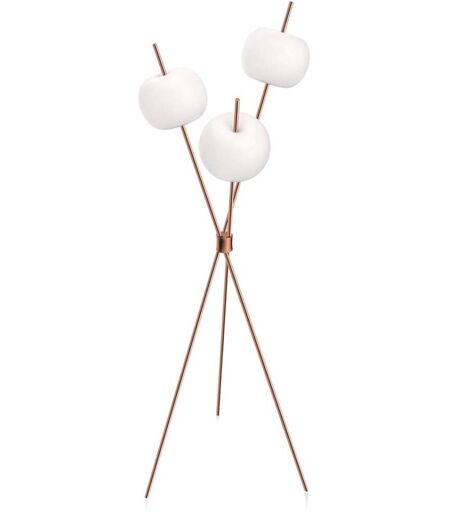 Aufgespießte Äpfelchen: die Kundalini Kushi Stehleuchte scheint als wären Äpfel an dem schmalen Metallstäben aufgespießt. Diese Optik war namensgebend für den Entwurf der Designer Alberto Saggia & Valerio Sommella, denn Kushi ist das japanische Wort für Spießchen. Entworfen für den italienischen Hersteller, erfolgt die gesamte Fertigung der Kundalini Kushi Stehleuchte ebenfalls in Italien. Der Fokus auf Nachhaltigkeit zeigt sich somit nicht nur in der Verwendung der energieeffiziente LED-Technik, sondern auch im Verzicht auf die Produktion im Ausland. Die Kundalini Kushi Stehleuchte besteht aus einem Korpus auf zweischichtig mundgeblasenem Opalglas auf einem edel beschichteten Metallstab. Die Stehleuchte ist mit 1900lm eine kräftig warmweiß (2700K) leuchtende Stehleuchte. Durch den Kabeldimmer kann sie an die gewünschte Lichtstimmung angepasst werden. Die Kundalini Kus... ...