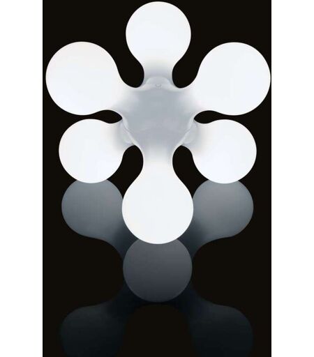 Die Atomium Bodenleuchte von Kundalini wurde von den beiden deutschen Industrie-Designern Benjamin Hopf und Constantin Wortmann 2007 entworfen. Für die kunstvolle Atomium Bodenleuchte wurden die beiden Designer von der Atomium Skulptur in Brüssel inspiriert. Dies ist nicht nur am Namen sondern auch an der Optik erkennbar. Die Atomium besitzt einen Polyethylendiffusor, der mit der Rotomoulding-Technologie (Bearbeitungsverfahren für Kunststoffe) gefertigt wurde. Im Inneren der Atomium befindet sich ein Gestell aus Stahl mit sechs Leuchtmitteln. So spendet die große Atomium, die auf den Tisch oder den Boden platziert werden kann, ein herrlich diffuses Licht in alle Richtungen. Das visuell fantastische Objekt bereichert gekonnt jedes Interieur, egal ob privat oder gewerblich. Die eindrucksvolle Atomium Bodenleuchte von Kundalini vereint optimal kreative Kunst mi... ...