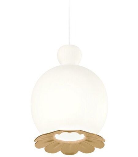 Die Kundalini Opyo Pendelleuchte wirkt wie eine Blume die von der Decke strahlt. Der mundgeblasene, doppelschichtige Schirm aus Opalglas ist unten bestückt mit Blütenblättern. Die reizvolle Pendelleuchte erinnert an eine Vase die auf einem Blütenbett ruht. Die Opyo Pendelleuchte ist eine Designsensation in ihrem raffinierten und ausdrucksvollen Entwurf. Die Kundalini Opyo Pendelleuchte der Designerin Cristina Celestino ist inspiriert von der Natur. Die Hauptinspirationsquelle der Kunst liegt seit der Antike in der Natur - mysteriös, perfekt und immer veränderlich. Dieses Leitmotiv war die lenkende Idee zu dieser formvollendeten, leicht verspielten Pendelleuchte. Der Schirm ruht auf Mohnschoten - Symbol der Einfachkeit - und erzeugt einen originellen Akzent in dem Leuchtobjekt. In ihrem naturverbundenen Stil erzielt die Opyo Pendelleuchte ein elegantes Ambiente in jedem Interieur. Die Pen... ...