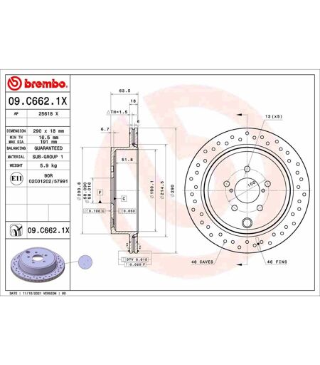 Bremsscheibe BREMBO 09.C662.1X, 1 Stück