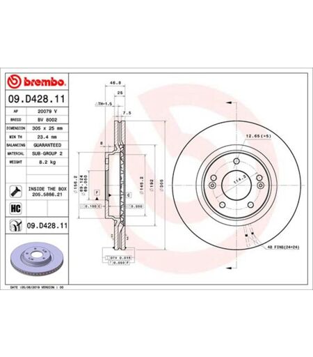 Die Sicherheit auf den Straßen hängt maßgeblich von der Beschaffenheit und Güte der Bremsscheiben ab. Neue Bremsscheiben vermindern Bremsenquietschen und -vibrationen.Diese Brembo Bremsscheibe ist belüftet, für die Vorderachse geeignet und hat einen Außendurchmesser von 305 mm. Sie passt unter anderem für Hyundai ix35, Hyundai i30 FASTBACK, Hyundai KONA Kasten/SUV, KIA CEED und KIA XCEED. Kaufen Sie die Brembo 09.D428.11 Bremsscheibe direkt bei Motointegrator. Wichtiger Hinweis: Bremsscheiben müssen paarweise ausgetauscht werden. Beim Austausch der Bremsscheiben müssen auch die Bremsbeläge ausgetauscht werden. ...