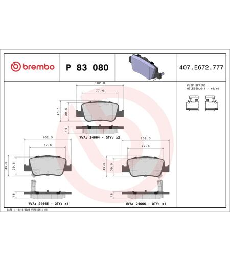 Anzahl verschleißanzeiger [pro achse]: 2. Breite [mm]: 102. Bremssystem: Bosch. Dicke [mm]: 16. Hersteller: BREMBO. Herstellernummer: P 83 080. Höhe [mm]: 46. Index: P 83 080. Linie: Prime line. Montage Achse: Hinten. Produktart: Bremsbelagsatz. Verschleißkontakt: Ja. WVA-Nummer: 24664,24665,24666. verschleisskontakttyp: akustisch. ...