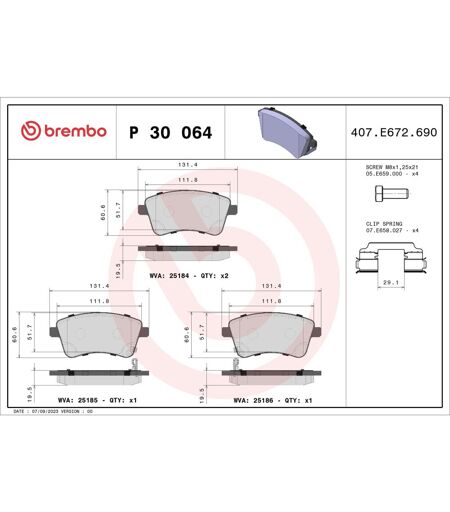Anzahl der Beläge: 4. Anzahl der schrauben: 4. Anzahl verschleißanzeiger [pro achse]: 2. Breite [mm]: 131. Bremssystem: TRW-LUCAS. Dicke [mm]: 19. Hersteller: BREMBO. Herstellernummer: P 30 064. Höhe [mm]: 61. Index: P 30 064. Linie: Prime line. Material: Low-Metallic. Montage Achse: Vorne. Produktart: Bremsbelagsatz. Typprüfung: ECE R90 APPROVED. Verschleißkontakt: Ja. WVA-Nummer: 25184,25185,25186. verschleisskontakttyp: akustisch. ...