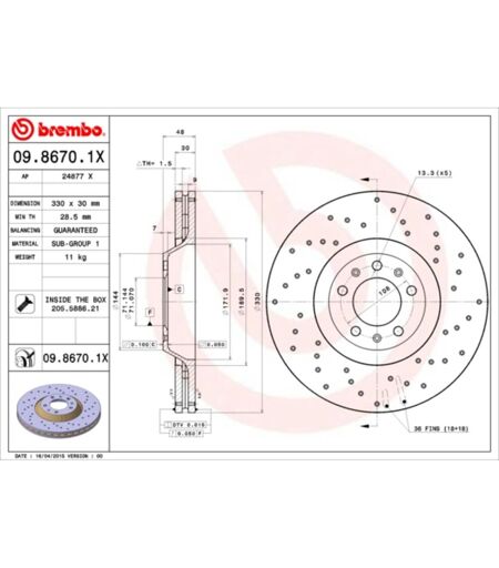 Bremsscheibe BREMBO 09.8670.1X, 1 Stück