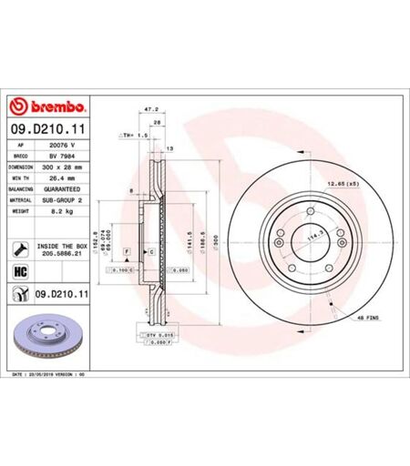 Bremsscheibe BREMBO 09.D210.11, vorne, belüftet, hochkarbonisiert, 1 Stück