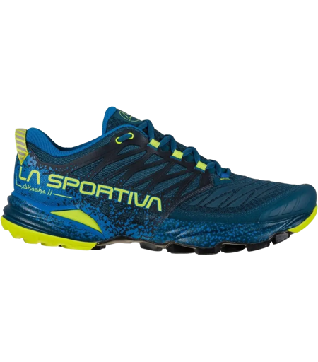 Mit dem neuen La Sportiva AKASHA II für Herren kommt die technische und ästhetische Überarbeitung des super-gedämpften Mountain Running®-Schuhs für die langen Distanzen. Der Akasha II hat einen neuen Look mit äußerem TPU Skelett und geometrischer Ästhetik, inspiriert vom Bushido II. Dieser Schuh wurde konzipiert für Läufe über ausgedehnte Trainingseinheiten bis hin zu Ultramarathons. Da Akasha II Modell mit verbesserter Dämpfung ist den endurance Wettkämpfen gewidmet, perfekt für lange Strecken, Ultra-Marathons, Ultra-Trails und mehrstündigem Einsatz beim Training. Die bequeme Passform ist verschiedenen Technologien zuzuschreiben: Dämpfung durch den plantaren Einsatz Cushion Platform™; breite Passform; weicher, umhüllender und atmungsaktiver Schaft mit Slip-on Konstruktion zur Vermeidung von Druckpunkten während des Laufens. Die innovativen, aktiven Verstärkungen Dynamic ProTechTion™ vorne bieten Schutz und Struktur indem sie den Bewegungen des Fußes ohne Einschränkungen folgen. Die gripige FriXion XT Sohle mit zweifach Gummimischung wurde mit exklusivem Trail Rocker™ System ausgestattet, welches der natürlichen Bewegung „erst äußere Ferse, dann innere Fußspitze“ während des Laufens folgt. Details zum La Sportiva AKASHA II für Herren: Schaft: Durchlöchertes AirMesh mit PU Leder hinten und DynamicProTechTion™ vorne Futter: Rutschfestes Mesh Zwischensohle: Eingespritztes EVA und Cushion Platform™ Fußbett: Ortholite® Hybrid Mountain Running. Sohle: FriXion® Red, Zweifachmischung mit Trail Rocker™ System Schnürsenkel: aus 100% recycelten Materialien Sprengung: 6 mm Gewicht: 310g Farbe: Storm Blue/Lime Punch ...