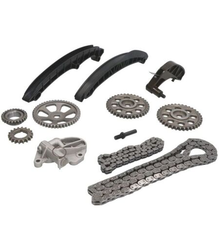 Alternativ zum Zahnriemen sind einige Fahrzeuge mit einer Steuerkette ausgestattet. Diese sorgt für eine Übersetzung der Drehbewegung der Kurbelwelle an die Nockenwelle(n), die wiederum für das Öffnen und Schließen der Ventile verantwortlich sind. Da der Wechsel der Steuerkette vergleichsweise kompliziert ist, empfiehlt sich direkt der Kauf eines kompletten Steuerkettensatzes wie dem Dayco Ktc1063.Steuerkettensatz - Wartung und ReparaturSteuerketten gelten als langlebige, teilweise sogar wartungsfreie Bauteile. Dennoch kann das Bauteil bei alten Fahrzeugen mit hoher Laufleistung verschleißen und muss erneuert werden, um einen schwerwiegenden Motorschaden zu vermeiden. Nicht selten deuten rasselnde Fahrgeräusche darauf hin. Da der Wechsel der Steuerkette mit einem hohen Arbeitsaufwand verbunden ist, empfiehlt es sich, bei einem Austausch direkt den kompletten Steuerkettensatz zu erneuern. Dieser Steuerkettensatz beinhaltet Kettenspanner,... ...