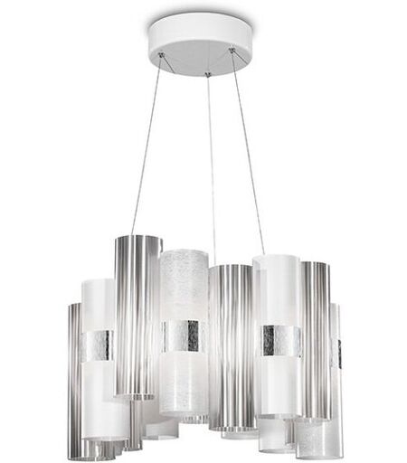 Die Slamp La Lollo Pendelleuchte der italienischen Designerin Lorenza Bozzoli überzeugt durch überragende Eleganz, effektvolle Dramatik und zauberhafte Farb- und Lichteffekte. Das außerordentliche Design ist ein Tribut an die herrlichen 50-er Jahre mit einem System von zylindrischen Aufhängungen in anmutiger Form, die Assoziationen mit dem Glamour und Blitzlichtern der Filmstars und Diven der damaligen Zeit weckt. Die Zylinder aus patentierten Technopolymeren der La Lollo Hängeleuchte werden um einen leuchtenden Ring in der Mitte sind auf unterschiedlichen Höhen angesiedelt und wechseln kaleidoskopartige Farben, Metallisierungen, Spitzenmotive, moderne Farbgradienten und geometrische Muster miteinander ab. Vollkommen im italienischen Slamp Atelier handgefertigt, werden die teiltransparenten Zylinder aus unzerbrechlichen, patentierten Technopolymer mit einem speziellen feinen Textur bedru... ...