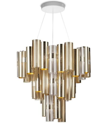 Die Slamp La Lollo Pendelleuchte der italienischen Designerin Lorenza Bozzoli überzeugt durch überragende Eleganz, effektvolle Dramatik und zauberhafte Farb- und Lichteffekte. Das außerordentliche Design ist ein Tribut an die herrlichen 50-er Jahre mit einem System von zylindrischen Aufhängungen in anmutiger Form, die Assoziationen mit dem Glamour und Blitzlichtern der Filmstars und Diven der damaligen Zeit weckt. Die Zylinder aus patentierten Technopolymeren der La Lollo Hängeleuchte werden um einen leuchtenden Ring in der Mitte sind auf unterschiedlichen Höhen angesiedelt und wechseln kaleidoskopartige Farben, Metallisierungen, Spitzenmotive, moderne Farbgradienten und geometrische Muster miteinander ab. Vollkommen im italienischen Slamp Atelier handgefertigt, werden die teiltransparenten Zylinder aus unzerbrechlichen, patentierten Technopolymer mit einem speziellen feinen Textur bedru... ...