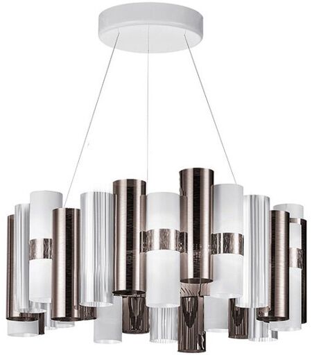 Die Slamp La Lollo Pendelleuchte der italienischen Designerin Lorenza Bozzoli überzeugt durch überragende Eleganz, effektvolle Dramatik und zauberhafte Farb- und Lichteffekte. Das außerordentliche Design ist ein Tribut an die herrlichen 50-er Jahre mit einem System von zylindrischen Aufhängungen in anmutiger Form, die Assoziationen mit dem Glamour und Blitzlichtern der Filmstars und Diven der damaligen Zeit weckt. Die Zylinder aus patentierten Technopolymeren der La Lollo Hängeleuchte werden um einen leuchtenden Ring in der Mitte sind auf unterschiedlichen Höhen angesiedelt und wechseln kaleidoskopartige Farben, Metallisierungen, Spitzenmotive, moderne Farbgradienten und geometrische Muster miteinander ab. Vollkommen im italienischen Slamp Atelier handgefertigt, werden die teiltransparenten Zylinder aus unzerbrechlichen, patentierten Technopolymer mit einem speziellen feinen Textur bedru... ...