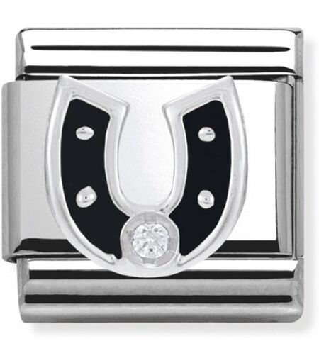 Nomination Classic - SilverShine aus Edelstahl mit 925er Silber, Email und Zirkonia - Hufeisen Schwarz - 330305/11