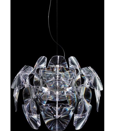 Das Designhaus Luceplan präsentiert mit der Luceplan Hope Pendelleuchte eine Leuchte, die Bezug nimmt auf traditionelle Lampenformen, diese jedoch mit hoch entwickelten neuen Technologien und zeitgemäßen Materialien neu interpretiert. Die Designer Francisco Gomez Paz und Paolo Rizzatto entwarfen mit der Luceplan Hope eine Leuchte, die superleicht und zerlegbar ist. Die Polycarbonat-Linsen haben eine dioptrische Wirkung, ähnlich wie Glas - allerdings ohne die Einschränkung von herkömmlichen Glasleuchten in Bezug auf Raum, Dicke und Gewicht. Den Erfolg der Leuchte feierte Luceplan zusammen mit den beiden Designern, als die Hope-Serie 2011 den XXII Compasso d`Oro Award gewann. Eine Reihe dünner Fresnel-Linsen aus Polykarbonat vervielfachen das Licht des Leuchtmittels und schaffen einen angenehm glitzernden, festlichen und mit zahlreichen kleinen Reflexen blitzenden Effekt. Mit dieser innova... ...