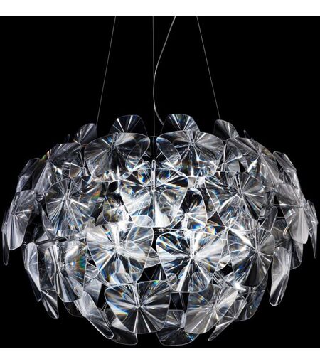 Das Designhaus Luceplan präsentiert mit der Luceplan Hope Pendelleuchte eine Leuchte, die Bezug nimmt auf traditionelle Lampenformen, diese jedoch mit hoch entwickelten neuen Technologien und zeitgemäßen Materialien neu interpretiert. Die Designer Francisco Gomez Paz und Paolo Rizzatto entwarfen mit der Luceplan Hope eine Leuchte, die superleicht und zerlegbar ist. Die Polycarbonat-Linsen haben eine dioptrische Wirkung, ähnlich wie Glas - allerdings ohne die Einschränkung von herkömmlichen Glasleuchten in Bezug auf Raum, Dicke und Gewicht. Den Erfolg der Leuchte feierte Luceplan zusammen mit den beiden Designern, als die Hope-Serie 2011 den XXII Compasso d`Oro Award gewann. Eine Reihe dünner Fresnel-Linsen aus Polykarbonat vervielfachen das Licht des Leuchtmittels und schaffen einen angenehm glitzernden, festlichen und mit zahlreichen kleinen Reflexen blitzenden Effekt. Mit dieser innova... ...