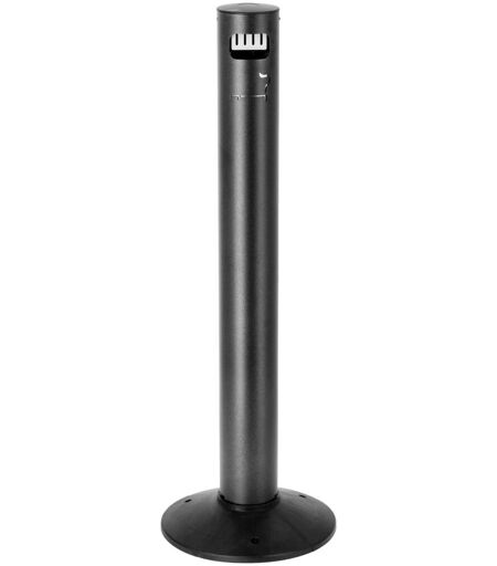 Formschöner Standascher mit Schutzdach bestehend aus Aluminium, Innenbehälter aus Weißblech. Für den Außenbereich geeignet, rostfrei. Der Säulenaschenbecher mit der regenabweisender Formgebung erfordert minimale Wartung. Abnehmbarer Kopf und Gitter zum Löschen von Zigaretten, Öffnen und Schließen mit Schloss. Fassungsvermögen 3 Liter. Basis: Metallballast, mit hochfester Kunststoffabdeckung zur Befestigung am Boden. Inkl. Schlüssel und Befestigungsmaterial. ...