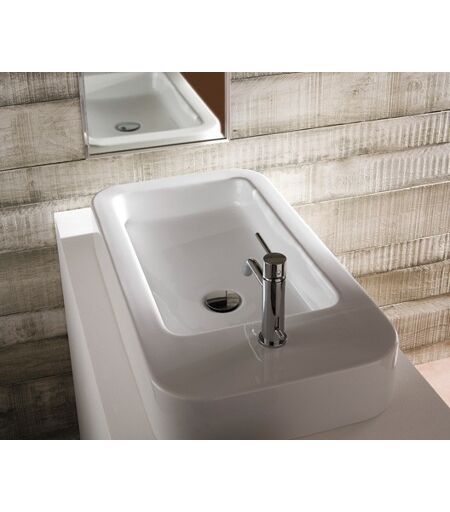 Globo Stone Aufsatzwaschtisch, B: 720, T: 390, H: 110 mm, mit 1 Hahnloch, weiss SS025BI