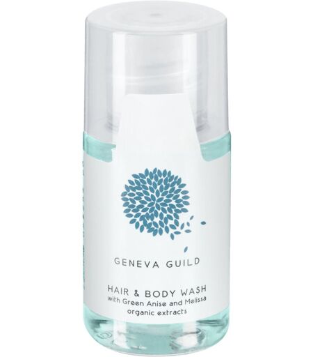 Mildes, kombiniertes Haarshampoo und Duschgel Geneva Guild. Ein zwei-in-eins-Pflegeprodukt der Extraklasse. Das zart reinigende Shampoo und Duschgel ist für jeden Haar- und Hauttyp geeignet. Die auserlesenen Duftnuancen sorgen für ein frisches und hygienisches Gefühl. Mit Brunnenkressen-Extrakt angereichert. Dermatologisch getestet und pH-neutral! Recyclingfähige Verpackung. Inhalt: 20 ml Fläschchen mit Schraubverschluss. ...