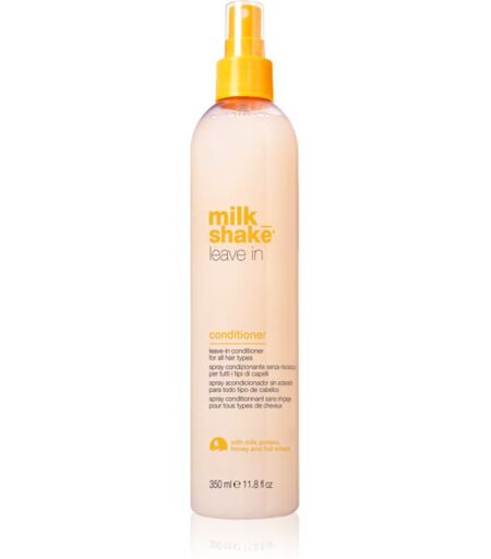 milk_shake® Leave-in Treatments Leave-in Conditioner, 350 ml, Leave-in Conditioner für Damen, Der Leave-in-Conditioner milk_shake® Leave-in Treatments Leave-in Conditioner bietet eine sofortige Dosis an intensiver Feuchtigkeit und Nährstoffen. Er gibt dem Haar alles, was es nach dem Waschen benötigt. Das Haar wird geschmeidig, erhält seinen natürlichen Glanz und die Integrität seiner Struktur zurück. Die Formel unterstützt die Regeneration und trägt dazu bei, dass sich das Haar leichter kämmen lässt. Und das alles einfach, schnell und ohne die Notwendigkeit, das Produkt auszuspülen. Einfach auftragen, einarbeiten, bzw. durchkämmen und schon wird das Haar von innen und außen wieder vor Kraft strotzen. Probieren Sie diesen Leave-in-Conditioner und entdecken Sie eine einfache und schnelle Möglichkeit der Haar-Regeneration mit vielen weiteren Vorteilen. Eigenschaften: verbessert die Haarstruktur erleichtert das Kämmen und das anschließende Stylen des Haars nährt und regeneriert für spürbar glänzendes und seidig weiches Haar Anwendung: Sprühen Sie eine angemessene Menge des Produkts auf das handtuchtrockene Haar und massieren Sie es mit den Händen ein. Nicht ausspülen und weiter wie gewohnt vorgehen. ...