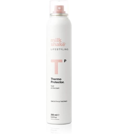 milk_shake® Lifestyling Thermo Protector, 200 ml, Hitzeschutz für das Haar für Damen, Beim Föhnen, Glätten oder Locken, insbesondere bei wiederholter und häufiger Anwendung, wird das Haar beansprucht, wodurch die Haarstruktur deutlich geschädigt werden kann. Das Hitzestyling-Produkt milk_shake® Lifestyling Thermo Protector hilft, dies zu verhindern. Es bildet einen Schutzfilm auf dem Haar, der bei der Verwendung von Stylinggeräten wirksam gegen Hitzeschäden hilft. Die enthaltenen Pflegestoffe verleihen dem Haar außerdem Kraft und erhöhen seine Widerstandskraft gegen schädliche äußere Einflüsse. Eigenschaften: stellt einen wirksamen Schutz beim Hitzestyling dar verhindert Haarbruch wirkt gegen Überbeanspruchung des Haars macht das Haar flexibel und natürlich beweglich Anwendung: Sprühen Sie eine angemessene Menge vor dem Föhnen, Glätten oder Wickeln auf das Haar. ...