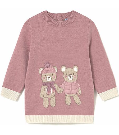 Baby Mädchen Kleid aus Viskose-Mischung Gerippter Rundhalsausschnitt Langarm Leicht überschnittene Schultern Schließt mit Druckknopfleiste in der hinteren Mitte Bären-Motiv im Vorderteil Kontrastfarbene Rippbündchen an Ärmel und Saum Farbbezeichnung: Rosa Material: 47% Viskose, 30% Polyamid, 23% Polyester ...