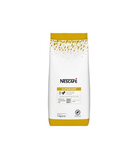 NESCAFÉ Superiore – 100% Arabicabohnen für vollmundigen KaffeegenussDer NESCAFÉ Superiore überzeugt mit einem ausgewogenen Aroma und wird aus hochwertigen Arabicabohnen hergestellt. Als ganze Bohne eignet sich dieser Kaffee besonders für den Einsatz in Kaffeevollautomaten und Standgeräten, wo er sein volles Geschmackspotenzial entfalten kann.Reine Arabicabohnen für feine AromenDer Artikel besteht zu 100% aus Arabicabohnen, die für ihren harmonischen Charakter . Das Ergebnis ist ein milder, dennoch ausdrucksstarker Kaffee mit ausgewogener Balance – ideal für den täglichen Kaffeegenuss in Büros, Gastronomiebetrieben oder im Automatenbereich.Ganze Bohnen für frisches MahlaromaDie Verwendung ganzer Bohnen ermöglicht ein individuelles Mahlergebnis direkt im Gerät. So bleibt das Aroma optimal erhalten, während sich der Duft frisch gemahlener Bohnen entfaltet – ein sinnliches Erlebnis bei jeder Tasse.Vielseitig einsetzbar und effizient im VerbrauchMit einem Inhalt von 1 kg ist das Produkt besonders ergiebig und für den Dauerbetrieb in Kaffeeautomaten geeignet. Die gleichbleibende Qualität sorgt für zuverlässige Ergebnisse – Tasse für Tasse.Genießen Sie hochwertigen Kaffeegenuss mit NESCAFÉ Superiore – jetzt im Online-Shop erhältlich. ...