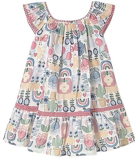 Niedliches Mädchen Kleid aus reiner Baumwolle Eckiger Ausschnitt mit Faltenlegung Angeschnittene Ärmel Volantbesatz am Saum Floraler Alloverprint Ausgestellte Passform Farbbezeichnung: Rosa Perfekt für besondere Anlässe - Taufe, Erstkommunion, Firmung, Hochzeit und Co. Material: 100% Baumwolle ...
