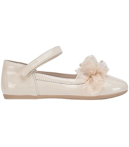 Kinder Ballerina aus glattem Lederimitat Schließt mit Riemen mit Klettverschluss Rüschenbesatz Unifarben Farbbezeichnung: Creme Perfekt für besondere Anlässe - Taufe, Erstkommunion, Firmung, Hochzeit und Co. Material: 100% Polyurethan Futter und Decksohle: 100% Schweineleder Sohle: 100% Thermoplastisches Gummi ...