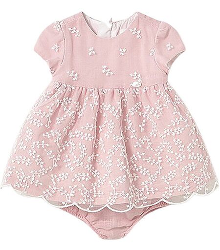 Festliches Baby Kleid aus Baumwoll-Mischung mit dazu passender Windelhose Rundhalsausschnitt Kurzarm Schließt mit Druckknopfleiste in der hinteren Mitte Raffung in der Taille Florale Stickerei Ausgestellte Passform Farbbezeichnung: Rosa Perfekt für besondere Anlässe - Taufe, Erstkommunion, Firmung, Hochzeit und Co. Material Kleid: 50% Polyester, 28% Baumwolle, 22% Polyamid Futter Kleid: 85% Baumwolle, 15% Polyester Material: Windelhose: 50% Baumwolle, 50% Polyester ...