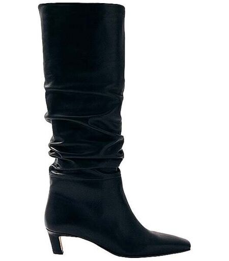 Damen Stiefel aus fein genarbtem Leder Geraffter Schaft Länge Schaft: 41cm Mittlerer Absatz Absatzhöhe: 5,5cm Unifarben Farbbezeichnung: Black Material: Leder Außensohle: Synthetik ...