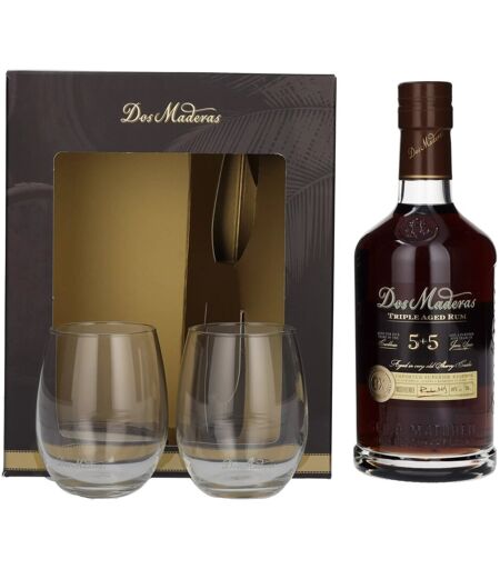 Dos Maderas Aged Rum Dos Maderas PX 5+5 Years Old Triple Aged Spirit Drink 40% Vol. 0,7l in Geschenkbox mit 2 Gläsern