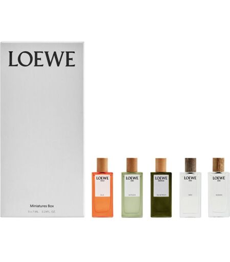Loewe Miniature Set, , Unisex Sets Unisex, Warum nur einen Duft probieren, wenn es doch gleich mehrere zur Auswahl gibt? Das Unisex-Parfumset Loewe Miniature Set eignet sich perfekt dazu, verschiedene Duftkompositionen zu entdecken. Das Set enthält mehrere Miniaturen, wodurch Sie jeden Tag etwas anders duften können. Wechseln Sie Ihren Duft je nach Lust und Laune oder Anlass und genießen Sie dabei die Vielfalt, die dieses Set bietet. Welchen Duft probieren Sie zuerst? Eigenschaften: für Frauen und Männer geeignet Kombinationsmöglichkeit zur Verstärkung der Wirkung der einzelnen Produkte limitierte Auflage Das Set beinhaltet: Loewe Solo Ella Eau de Parfum 7 ml Loewe Aire Sutileza Eau de Toilette 7 ml Loewe Esencia Eau de Parfum 7 ml Loewe 001 Man Eau de Parfum 7 ml Loewe 001 Woman Eau de Parfum 7 ml ...
