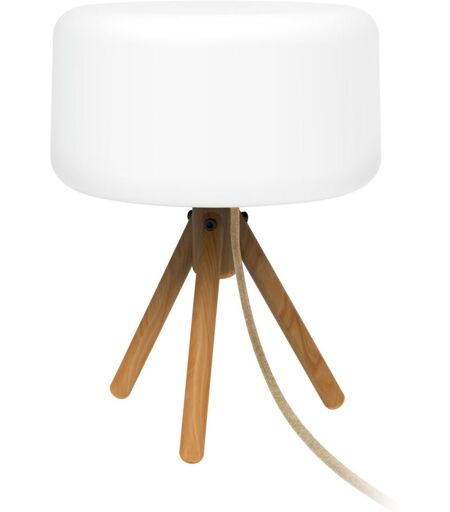 Dimmbare LED Tischleuchte aus widerstandfähigem Kunststoff und Füßen aus Holz sowie Kabel aus Jute. Für den Innen- und Außenbereich geeignet. Lichtfarbe warmweiß 4000 K, Lumen 500 lm, LED integriert. ...