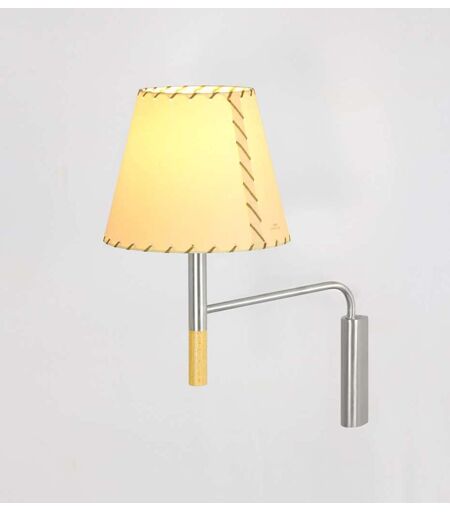 Die Santa & Cole BC3 Wandleuchte des Santa & Cole Designteams ist eine schwenkbare Lichtquelle, die archetypische Designelemente und funktionalen Mehrwert kombiniert. Kühle und warme Materialien ergeben eine charmante kleine Wandleuchte mit einem Hauch Nostalgie, die sowohl einzeln als auch in Reihe montiert werden kann. Die Santa & Cole BC3 Wandleuchte besteht aus einem Gestell aus satiniertem Nickel. An der schmalen Wandhalterung kann die Leuchte in beide Richtungen geschwenkt werden, an der Unterseite der Halterung befindet sich ein Griffelement aus Buchenholz. Der klassisch geformte Leuchtenschirm Santa & Cole BC3 Wandleuchte wird wahlweise aus beigem Pergamentkarton mit groben Ziernähten oder aus plissiertem Stoff gefertigt. Je nach Material und Farbe hat die Santa & Cole BC Wandleuchte einen ganz eigenen Charme und eigene Lichtwirkung. Die Santa & Cole BC3 Wandleuchte ist dank der ... ...