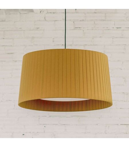 Die Santa & Cole GT5 Hängeleuchte ist zeitlos und elegant. Dadurch eignet sie sich besonders gut zur stimmungsvollen Allgemeinbeleuchtung von großen oder geschäftlichen Räumen. Durch seine relativ niedrige Höhe wirkt der Schirm der GT5 Hängeleuchte sehr zeitgemäß, obwohl der große Schirm eine konische Form besitzt. Das Streifenband aus Baumwolle, das den Schirm umgibt verleiht ihm seinen wohnlichen Akzent. Entscheiden Sie sich bei der Santa & Cole GT5 Hängeleuchte für die naturfarbene Variante, so wirkt die GT5 Hängeleuchte zurückhaltend. Die amber-rote, senffarben, terracotta und die schwarze Version setzen hingegen klare Akzente. Am unteren Rand wird das Leuchtmittel der Santa & Cole GT5 Hängeleuchte elegant durch eine Abdeckplatte aus weißem Kunststoff verdeckt und das Licht wird hierdurch gleichmäßig und blendfrei verteilt. Der Deckenbaldachin der GT 5 Hängeleuchte von Santa & Cole i... ...