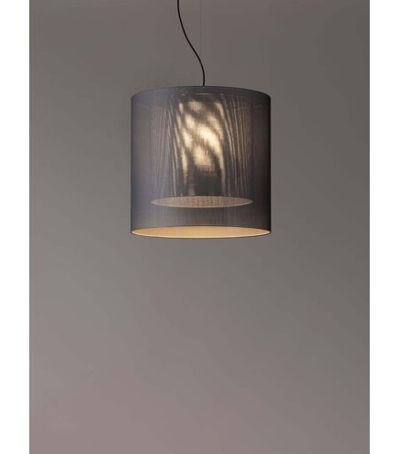 Die Santa & Cole Moaré LM Pendelleuchte von Designer Antoni Arola besticht durch die außergewöhnliche optische Wirkung des mehrlagigen durchlässigen Schirms. Bei dieser schlichten Pendelleuchte werden zwei zylindrische Schirme aus grobmaschigem Soltis-Gewebe ineinander gelagert, wodurch ein luftdurchlässiger Moiré-Effekt erzielt wird. Die beiden Leuchtenschirme der Santa & Cole Moaré LM Pendelleuchte sind in verschiedenen Farben erhältlich, die nach gewünschter Wirkung im Raum sowie Lichtintensität kombiniert werden können. Die Lichtquelle ist zur Entblendung von einem acrylsatinierten Kunststoffzylinder umgeben, der das Licht gleichmäßig streut. Dadurch ist die Santa & Cole Moaré LM besonders gut zur Beleuchtung von Esstischen geeignet. Die filgrane Abhängung aus Aluminium sowie die rechteckige Deckenrosette sind graphitfarben und treten dezent in den Hntergrund. Die Santa & Cole Moaré ... ...