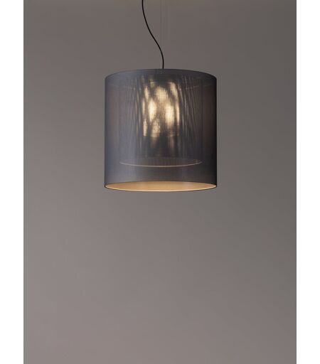 Die Santa & Cole Moaré LM Pendelleuchte von Designer Antoni Arola besticht durch die außergewöhnliche optische Wirkung des mehrlagigen durchlässigen Schirms. Bei dieser schlichten Pendelleuchte werden zwei zylindrische Schirme aus grobmaschigem Soltis-Gewebe ineinander gelagert, wodurch ein luftdurchlässiger Moiré-Effekt erzielt wird. Die beiden Leuchtenschirme der Santa & Cole Moaré LM Pendelleuchte sind in verschiedenen Farben erhältlich, die nach gewünschter Wirkung im Raum sowie Lichtintensität kombiniert werden können. Die Lichtquelle ist zur Entblendung von einem acrylsatinierten Kunststoffzylinder umgeben, der das Licht gleichmäßig streut. Dadurch ist die Santa & Cole Moaré LM besonders gut zur Beleuchtung von Esstischen geeignet. Die filgrane Abhängung aus Aluminium sowie die rechteckige Deckenrosette sind graphitfarben und treten dezent in den Hntergrund. Die Santa & Cole Moaré ... ...