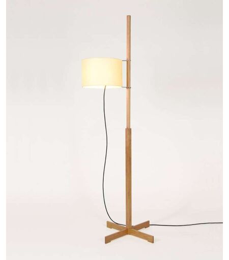 Die Santa & Cole TMM Stehleuchte aus dem Jahr 1961 ist eine höhenverstellbare Lichtquelle von unaufdringlicher Eleganz. Ihre traditionellen Materialien verleihen dem Entwurf von Design Miguel Milá einen unaufdringlichen Retro-Charme. Die Santa & Cole TMM Stehleuchte besteht aus einem schmalen Gestell mit charakteristisch rechtwinklig nach außen verlaufenden Holzstreben. Das Holz ist in verschiedenen Varianten erhältlich und bildet einen eleganten Kontrast zu dem hellen Schirm aus Pergamentpapier. Auf der Oberseite ist ein ein lichtdurchlässiger Diffusor aus Methacrylat angebracht, der das Licht sanft entblendet. Die Santa & Cole TMM Stehleuchte wird über Ziehen am Kabel eingeschaltet. Über zwei schmale Verbindungselemente kann der Leuchtenschirm in der Höhe verstellt werden.Bitte beachten Sie, dass zum Schutz des Diffursors nur LED-Retrofit-Leuchtmittel eingesetzt werden sollen. Raumlich... ...