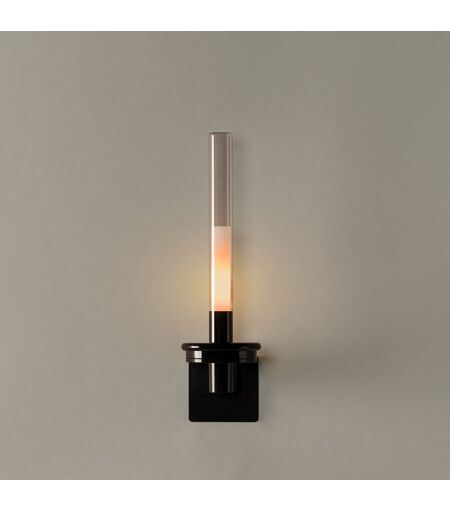 Die Santa & Cole Sylvestrina Wandleuchte ist eine elegante Beleuchtungslösung, die traditionelles Design mit moderner Funktionalität vereint. Mit ihrer glänzend schwarzen, runden Metallbasis und dem zylindrischen Glasschirm aus transparentem Pyrex-Glas strahlt sie ein warmes, diffuses Licht aus, das jedem Raum eine einladende Atmosphäre verleiht. Diese Wandleuchte eignet sich hervorragend für breite Räume, Flure oder auch kleinere Ecken, in denen sie als stimmungsvolle Akzentbeleuchtung dient. Inspiriert von der Form einer traditionellen Kerze, wurde die Sylvestrina Wandleuchte von den Designern Enric Sòria und Jordi Garcés entworfen. Ihr Ziel war es, die zeitlose Ästhetik klassischer Beleuchtung mit den Vorteilen moderner Technik zu kombinieren. Der weiße, transluzente Diffusor innerhalb des Glaskörpers sorgt für eine gleichmäßige Lichtverteilung und minimiert Blendungen, wodurch ei... ...