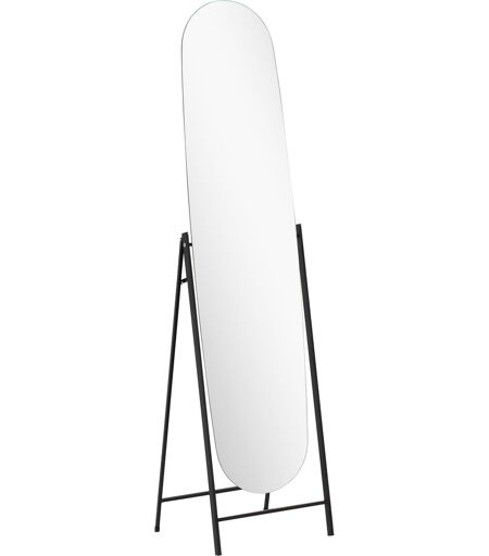 HOMCOM Freistehender Ganzkörperspiegel mit Wölbung 160x40 cm, Spiegel zum Stellen oder Anhängen an der Wand, rahmenlos, Metallständer, für Wohnzimmer, Schlafzimmer, Ankleidezimmer und Eingangsbereich, Schwarz