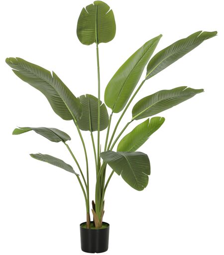 HOMCOM Künstliche Dekorative Pflanze 109 cm Künstliche Bananenpflanze mit Topf und Blättern für Zuhause Wohnzimmer Büro Grün