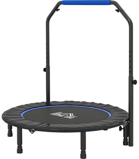 HOMCOM Fitness-Trampolin für Erwachsene Ø114 cm, zusammenklappbarer Minitrampolin mit verstellbarem Griff in 4 Stufen, Stahlrahmen, für Bein- und Körpertraining zu Hause, im Büro, im Fitnessstudio, Blau und Schwarz
