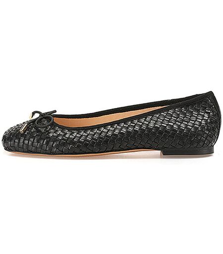 Modische Damen Ballerina aus Leder Flechtmuster Maschen-Detail vorne Flacher Absatz Unifarben Farbbezeichnung: Black Material: Leder Innensohle: Leder Laufsohle: Kunststoff ...