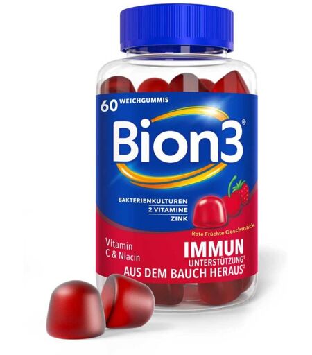 Unterstützen Sie Ihre natürlichen Abwehrkräfte mit den Bion3® IMMUN¹ Weichgummis – Immununterstützung¹ aus dem Bauch heraus²!