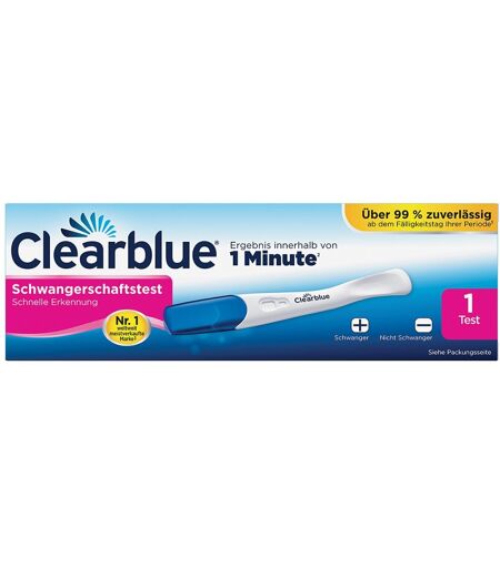 Anwendungsgebiet von Clearblue Schwangerschaftstest schnelle ErkennungClearblue Schwangerschaftstest schnelle Erkennung kann Ihnen das Ergebnis „Schwanger“ schon nach 1 Minute anzeigen, wenn Sie am Tag