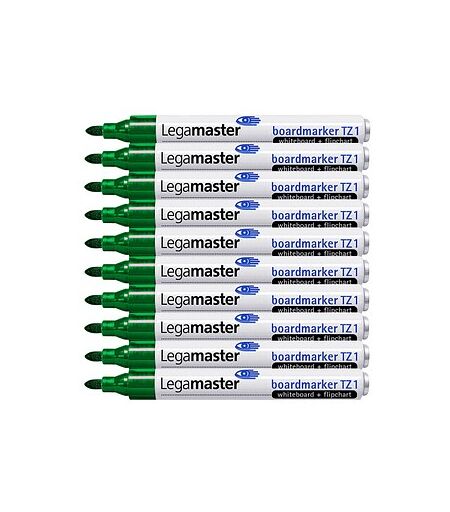 Legamaster TZ 1 Whiteboard- und Flipchart-Marker grün 1,5 - 3,0 mm, 10 St. – Must-have bei Meetings, Unterricht oder WorkshopsUneingeschränkt auf Papier oder glatten Flächen einsetzbar: die Legamaster TZ 1 Whiteboard- und Flipchart-Marker grün 1,5 - 3,0 mm, 10 St. Erleben Sie die Vielseitigkeit dieses Produkts, mit dem Sie Ihre Inhalte überall ansprechend und deutlich darstellen können.Auffallende Farbe und angenehme AnwendungFür Ihre Projekte erhalten Sie hier die Farbe Grün. Mit dieser ansprechenden und beliebten Farbe können Sie Ihre Inhalte deutlich darstellen. Dank runder Griffzone passen Die Modelle zu jedem Schreibtyp und liegen fest in der Hand.Kann ohne einzutrocknen auch mal länger offen bleibenGute Nachrichten für alle, die gerne einmal vergessen, die Verschlusskappe wieder aufzustecken: Der Stift kann für einige Tage offen liegen bleiben, ohne dass die Funktionsweise darunter leidet. Er schreibt auch weiterhin einwandfrei und seine Schreibfarbe kommt schön zur Geltung.Runde Spitze mit 1,5 - 3,0 mm StärkeDie Spitze ist normal rund, weshalb es sich sehr flüssig und leicht mit ihr schreiben und malen lässt. Die Stärke des Strichs, den die Spitze erzeugt, beträgt 1,5 - 3,0 mm**. Bei Bedarf lässt sich die Spitze problemlos austauschen. Passende Ersatzspitzen können Sie einfach nachbestellen. Einfach, schnell und rückstandslos können Sie mit einem Tuch die Tinte wieder entfernen, ohne dass dabei Schlieren oder Verfärbungen zurückbleiben.Für eine angenehme AnwendungDank der geruchsarmen Tinte brauchen Sie keine Kopfschmerzen, Übelkeit oder Irritation der Atemwege zu befürchten. Diese werden meist durch stark riechende Lösungsmittel verursacht. Das Gehäuse ist gefertigt aus robustem Aluminium, das Langlebigkeit und Stabilität garantiert.LichtbeständigDie Tinte ist lichtbeständig und garantiert eine dauerhafte Farbkraft.In Nullkommanix trockenSehr hilfreich: Die Farbe trocknet sehr schnell und verschmiert dadurch nicht. Dies kommt besonders Linkshändern zugute.Nachfüllbar für einen längeren GebrauchSehr praktisch: Die Tinte ist nachfüllbar. Dies ist eine hervorragende Option für Umweltbewusste. Außerdem kann dies kostengünstiger sein als eine Neuanschaffung.Passt zu dem, wonach Sie suchen?Dieses Produkt ist perfekt geeignet für Flipchart-Papier und Whiteboards. Überzeugen Sie sich selbst von der Qualität und bestellen Sie die Legamaster TZ 1 Whiteboard- und Flipchart-Marker grün 1,5 - 3,0 mm, 10 St. hier in unserem Online-Shop. ...