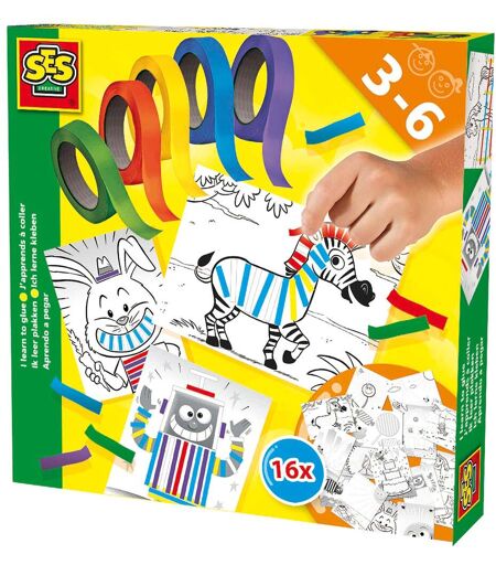 Bei diesem Set "Ich lerne kleben" von SES müssen Kinder Farbstreifen von der jeweiligen Rolle reißen und auf die vorgedruckten Vorlagen kleben. So entstehen nach und nach viele bunte Bilder. Eine Beschäftigung für lustige Kinderfeste. Material: Papier, Pappkarton ...