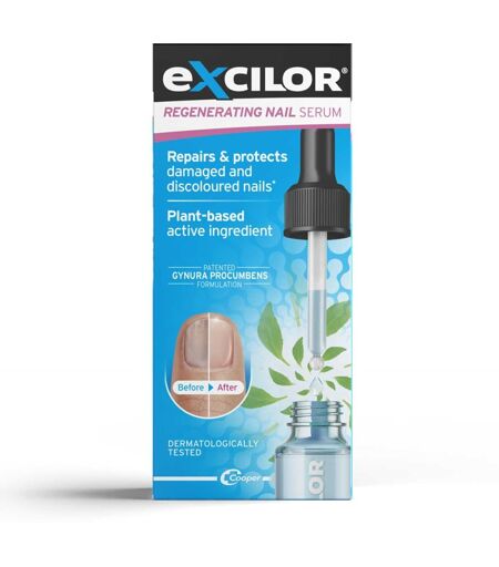 Anwendungsgebiet von Excilor® Regenerierendes NagelserumExcilor® Regenerierendes Nagelserum ist ein innovativer und ganzheitlicher Ansatz zur Regeneration gesunder Nägel, das eine patentierte, pflanzliche Formel mit Auszügen aus der Gynura Precumbens kombiniert, um geschädigte und verfärbte Nägel zu reparieren und zu verjüngen. Dieses dermatologisch getestete Serum fördert das Nachwachsen gesunder Nägel und zeichnet sich durch seine einfache Anwendung zur Bekämpfung geschädigter und verfärbter Nägel aus, die durch Sport, Alter, Rauchen, Ernährung, Nagellack usw. entstanden sind. Es unterstützt die Wiederherstellung der natürlichen Festigkeit und des gesunden Aussehens der Nägel und bietet eine sanfte, natürliche Lösung zum Erhalt und zur Pflege langfristig gesunder Nägel.Freuen Sie sich über schöne, gesunde Nägel und das damit verbundene Selbstbewusstsein.Für eine sichere und wirksame Anwendung der Excilor Lösung befolgen Sie bitte folgende Maßnahmen: nur äußerlich anwenden, bei Allergien gegen einen bestimmten Inhaltsstoff Produkt nicht anwenden, Kontakt mit Augen und Schleimhäuten vermeiden. Befragen Sie vor der ersten Anwendung außerdem einen Arzt, wenn Sie schwanger sind oder stillen, Diabetiker oder unter 18 Jahre alt sind. Beachten Sie auch, dass das Produkt nicht bei Kindern unter 3 Jahren angewendet werden darf. Bewahren Sie das Produkt unbedingt außerhalb der Reichweite von Kindern auf, um jeglichen Kontakt zu vermeiden.Wirkstoffe / Inhaltsstoffe / ZutatenExcilor® Regenerierendes Nagelserum enthält:Isopropyl Myristate, Gynura Procumbens Leaf extract, Isopropyl Alcohol, Alpha-terpinene.GegenanzeigenBei bekannter Überempfindlichkeit gegenüber einen der oben genannten Inhaltsstoffe sollte dieses Produkt nicht angewendet werden.DosierungAnwendungsempfehlung von Excilor® Regenerierendes Nagelserum:Täglich 1-2 Tropfen auftragen und 3-4 Minuten einwirken lassen. Nach Auftreten der ersten sichtbaren Erfolge, di ...