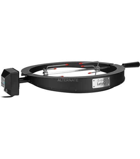Die LetzQ Rotisserie passt genau für das Big Green Egg Large. Der Drehspieß ist aus robustem Edelstahl 304 gefertigt und verwandelt das Big Green Egg Large in einen kompletten Rotisserieofen. Mit dem Drehspieß kann man z.B. Hühnchen, Rippchen oder Schweineschulter zubereiten. Der LetzQ-Spieß ist mit einem leisen, leistungsstarken 4 Watt Elektromotor ausgestattet, der bis zu 15kg drehen kann. Durch die konstante Drehzahl bleiben die natürlichen Fleischsäfte erhalten und das Fleisch gart gleichmäßig im Big Green Egg durch. Der Ring, in den der LetzQ Drehspieß eingelegt wird, hat einen Durchmesser von 46cm und eine auffällige Keilform, damit der Deckel ganz schließt und die Wärme optimal erhalten bleibt. Der robuste, einfach zu montierende Drehspieß ist mit zwei verstellbaren Fleischgabeln ausgestattet. ...
