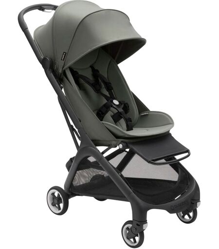 Der Buggy Butterfly von Bugaboo überzeugt als echter Globetrotter: In nur einer Sekunde ist das leichtgewichtige Design kompakt zusammengefaltet und bereit für den nächsten Ausflug. Altersempfehlung: ab 6 Monaten; ab Geburt mit Zubehör (separat erhältlich) Belastbarkeit: bis 22 kg, Einkaufskorb bis 8 kg Verwendung: für die Stadt, als Travelsystem mit Babyschale (separat erhältlich) Klappmaß: 54(L) x 45(B) x 23(T) cm Gewicht: 7 kg Räder: gefederte, pannensichere Räder, vorn schwenkbar Lieferumfang: Gestell mit Rädern und Korb, Sitzrahmen, Sitzbezug und Inlay, Verdeckrahmen, Verdeckklammern und Verdeckbezug, Regenverdeck, Tragegurt Gestell: Aluminium, Einhand-Faltmechanismus, Handgepäck-Maß, Tragegurt, Feststellbremse Sitzeinheit: 5-Punkt-Sicherheitsgurt, hohe, bis in die Ruheposition verstellbare Rückenlehne, 5-fach verstellbare Beinstütze, gepolstertes, maschinenwaschbares Inlay, ausziehbares Sonnenverdeck mit Belüftungsfenster, wasserabweisende, strapazierfähige und weiche Textilien Sicherheit und Komfort Der Buggy Butterfly von Bugaboo ist die ideale Wahl für unternehmungslustige Familien. Leichtgewichtig und kompakt zusammenklappbar, ist das Modell schnell verstaut und überall dabei. Die mit einem weich gepolsterten Inlay versehene Sitzeinheit lädt Kinder ab sechs Monaten ein, Platz zu nehmen. Dabei können es sich die Minis richtig gemütlich machen. Die 63 Zentimeter hohe Rückenlehne kann bis in die Liegeposition geneigt werden. Die Beinablage lässt sich fünfstufig verstellen. Die Kleinen können sich entspannt zurücklehnen und sogar ein Nickerchen machen. Der längenverstellbare 5-Punkt-Gurt hält sie zuverlässig an ihrem Platz. Außerdem sind sie unter dem großen, ausziehbaren Verdeck vor Wind und Sonne sicher. Wie alle Textilien des Buggys ist es wasserabweisend und strapazierfähig sowie angenehm weich. Ein separates Regencover schützt die kleinen Passagiere unterwegs vor Niederschlag. Gestell und Fahrwerk Das aus Aluminium gefertigte Gestell des Buggys punktet mit einem Gewicht von gerade einmal sieben Kilogramm. In nur einer Sekunde lässt es sich mit einer Hand auf Handgepäckmaß zusammenklappen und kinderleicht transportieren. Zu diesem Zweck gehört ein extra Schultergurt zum Lieferumfang, aber auch die Fußstütze kann als Griff verwendet werden. Die pannensicheren Räder sind für einen ruhigen Lauf gefedert. An der Vorderseite können sie für ein Plus an Wendigkeit in den Schwenkmodus gebracht werden. Eine Feststellbremse sichert den Wagen, sobald die Fahrt beendet wird. Die Belastbarkeit des Kinderwagens liegt bei 22 Kilogramm. Der geräumige Korb bietet Einkäufen und Accessoires mit einem Gewicht von bis zu acht Kilogramm Platz. Lieferumfang Zum Lieferumfang gehören das Gestell samt Rädern und Einkaufskorb sowie der Sitzrahmen, der Verdeckrahmen und die passenden Bezüge. Auch das Inlay für den Sitz sowie ein Regenverdeck sind inbegriffen. Besonderheiten Der Buggy kann in Kombination mit einer separat erhältlichen Babyschale als... ...